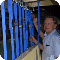 Die 12m hohe, 110m breite Leinwand wird in zwei über 50m lange Abschnitte auf, aus Rohrsegmenten